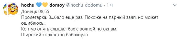 В половине девятого дончане начали жаловаться на очень мощные звуки. Взрывы одиночные, раздаются с интервалом в несколько минут.