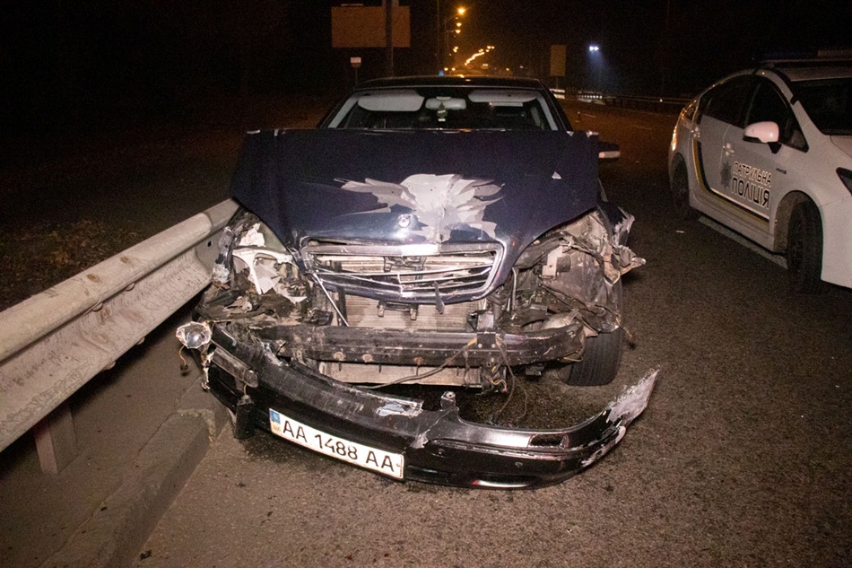 По данным "Информатора", по шоссе в сторону центра Киева двигался Mercedes Viano, а за ним на высокой скорости на "лысой" резине мчался Mercedes W220, которого начало заносить и он догнал микроавтобус, после чего отлетел в отбойник.