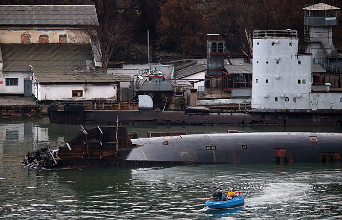 В Южной бухте Севастополя затонул плавучий док ПД-16, в котором находилась списанная подводная лодка Черноморского флота РФ Б-380.