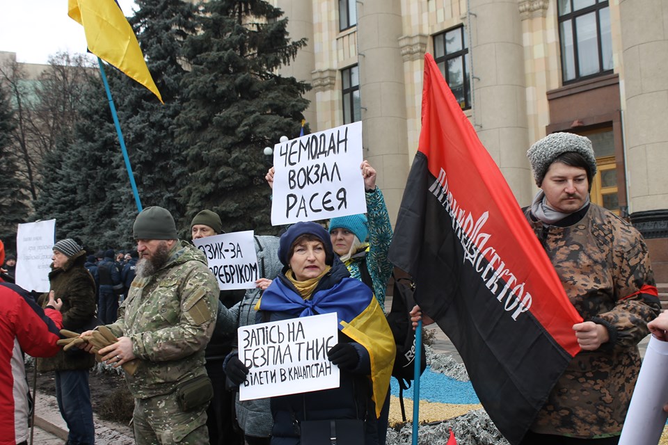 Сегодня, 27 января в Харькове у Дома советов проходил митинг за изучение русского языка в школах. Одновременно рядом на акцию собрались патриоты, которые выступали против насаждения русского языка.