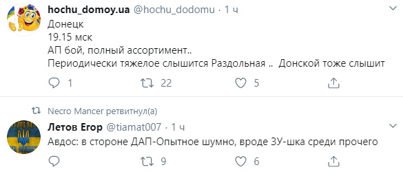 В то же время начали поступать сообщения о боевых действиях, звуки которых слышали в Донецке и Авдеевке. Местные жители определили, что звуки войны доносятся со стороны Донецкого аэропорта и Опытного.