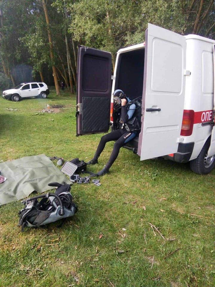 Водолазами-спасателями в 8:32 были найдены и изъяты на берег двое погибших и в 11 часов с помощью автокрана изъят автомобиль.
