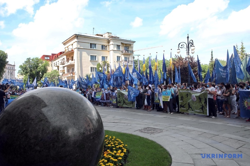 Сначала митингующие собрались на Банковой под ОПУ, чтобы напомнить президенту Владимиру Зеленскому о его обещании завершить строительство 23 жилых комплексов, передает Час Пик со ссылкой на СМИ.