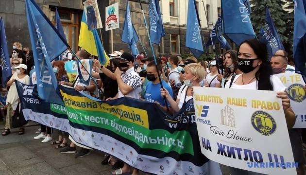 Сегодня в центре Киева проходил митинг инвесторов строительной корпорации "Укрбуд", которые требовали возобновить строительство жилых комплексов.