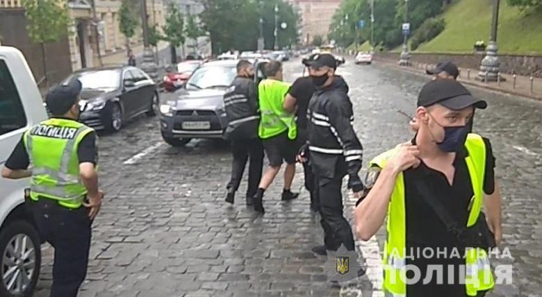 "До момента перекрытия улицы Грушевского акция проходила мирно и в правовом поле. Но при попытке восстановить движение транспорта одному полицейскому бросили на ногу бочку, другого - ударили металлической палкой. Таким образом отдельные лица пытались устроить провокацию и спровоцировать столкновение с полицейскими. В настоящее время обоих правонарушителей задержали, они будут отвечать за свои действия", - сообщил начальник Главного управления Национальной полиции в городе Киеве Андрей Крищенко.