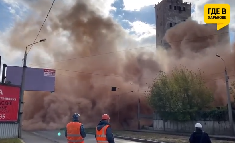 В воскресенье, 18 октября в Харькове в районе Южного вокзала была взорвана часть старого элеватора.