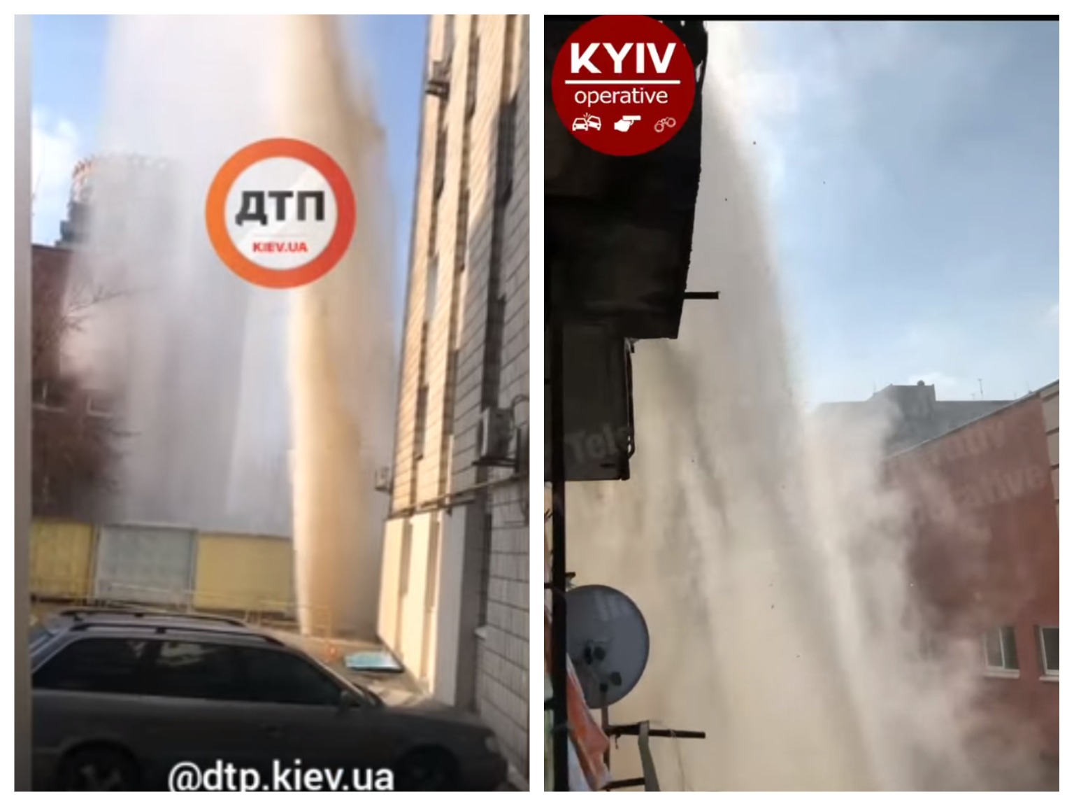В соцсетях появились видео в места событий: "гейзер" горячей воды бьет на высоту с 9-этажный дом.