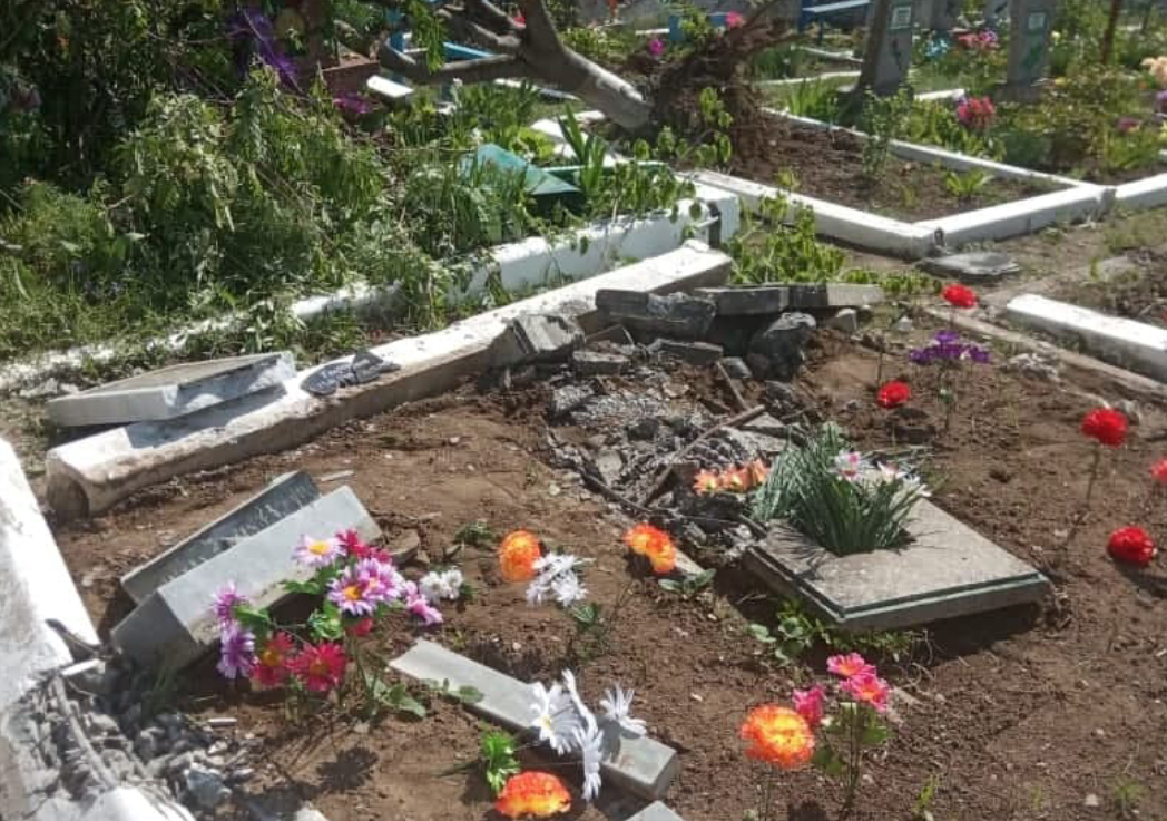 Как пишут в соцсетях местные жители, боевики влетели на кладбище на танке, снесли много могил, ограды, вырвали с корнями деревья. Как утверждается, такое происходит уже не впервые.