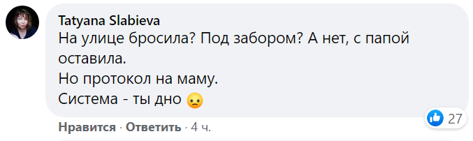 Позже в комментарии СМИ в столичной полиции объяснили, что протокол составили на мать, потому что именно она пришла в отделение полиции, а если бы пришел отец - протокол бы составили на него. Но такое объяснение устроило далеко не всех.
