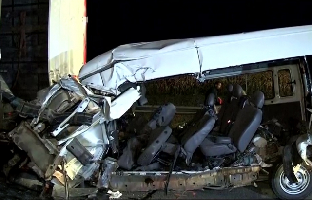ДТП произошло вблизи венгерского города Абонь. На 89-м километре скоростной автострады М4 в направлении Будапешт-Солнок микроавтобус на большой скорости въехал в заднюю часть грузовика.