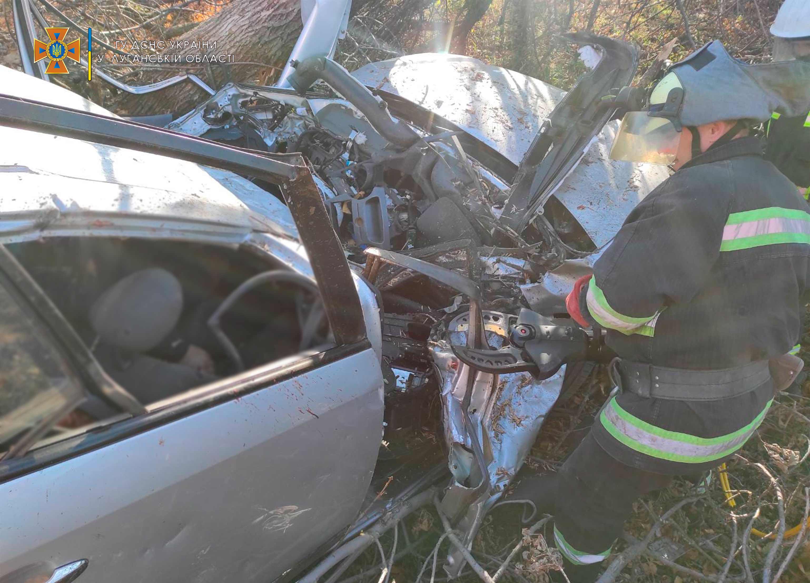 В Старобельском районе Луганской области спасатели деблокировали погибшего мужчину из искореженного автомобиля.