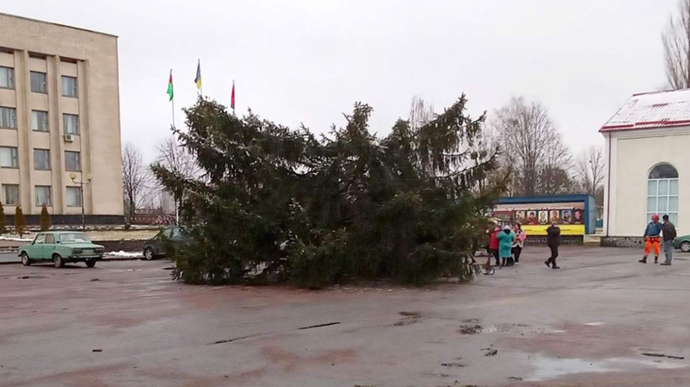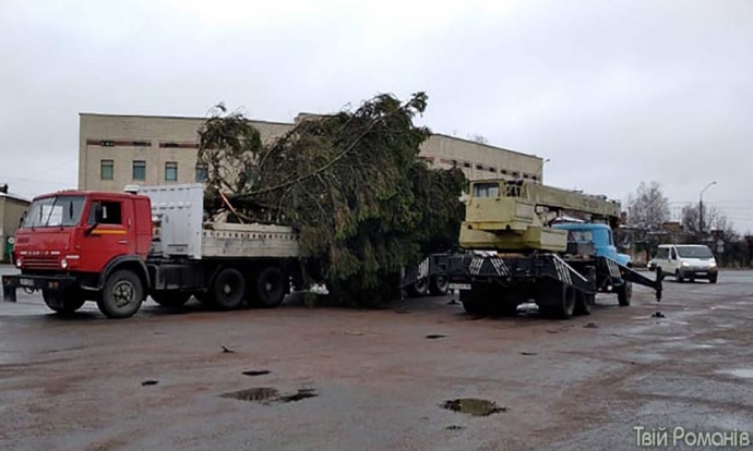 Елка в поселке Романов Житомирской области оказалась слишком "несчастливой". Ее срезали в селе Булдичев, где ее корни поднимали административное здание. Во время транспортировки в Романов ветки дерева оборвали провода, и несколько населенных пунктов остались без интернета.