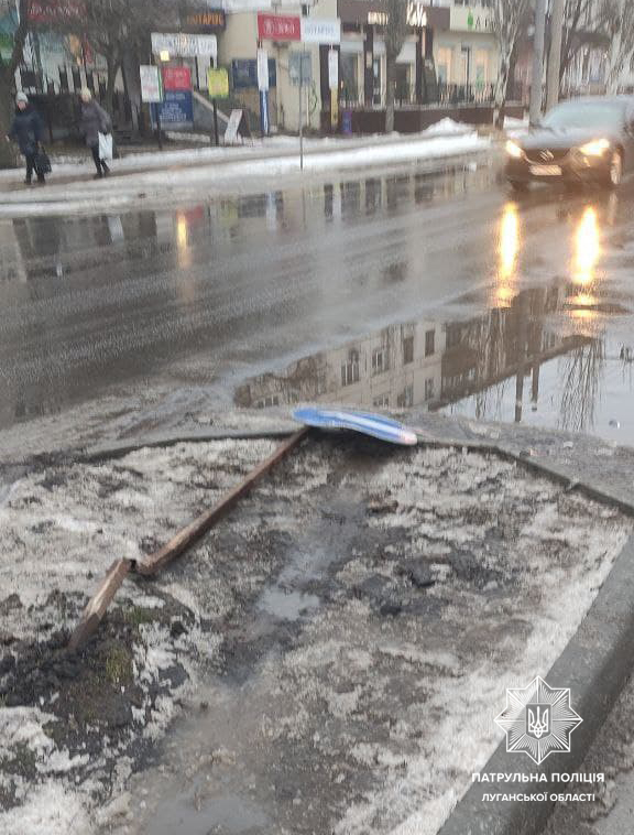 Вчера, 1 февраля, в Северодонецке на проспекте Гвардейском патрульные обнаружили поврежденный дорожный знак. Во время мониторинга социальных сетей инспекторы наткнулись на видео случайных свидетелей ДТП, в результате которого был поврежден знак.