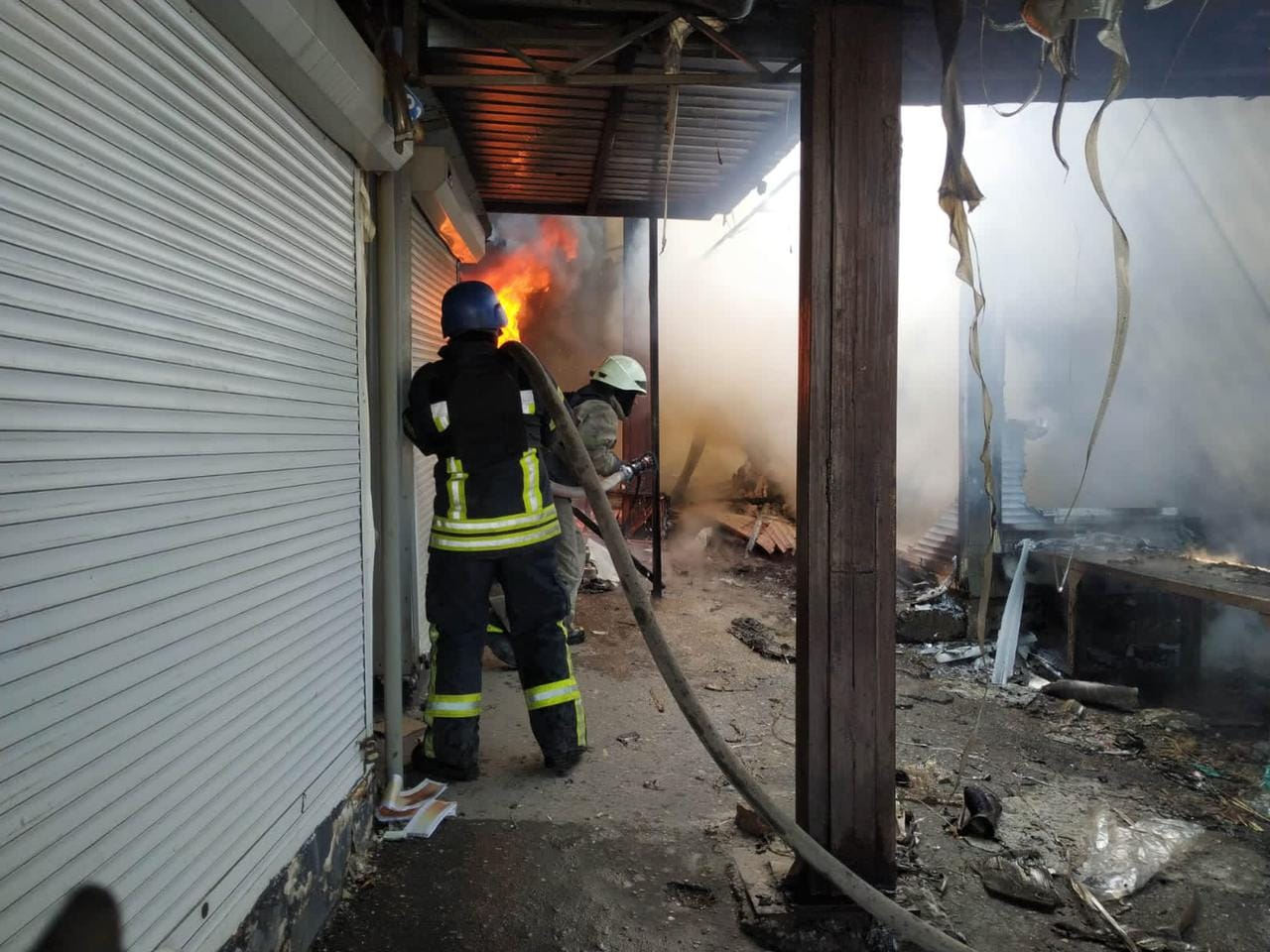 Лисичанская ВГА на своей странице в Фейсбуке обнародовала кадры тушения пожара на рынке 6 июня, передает Час Пик.