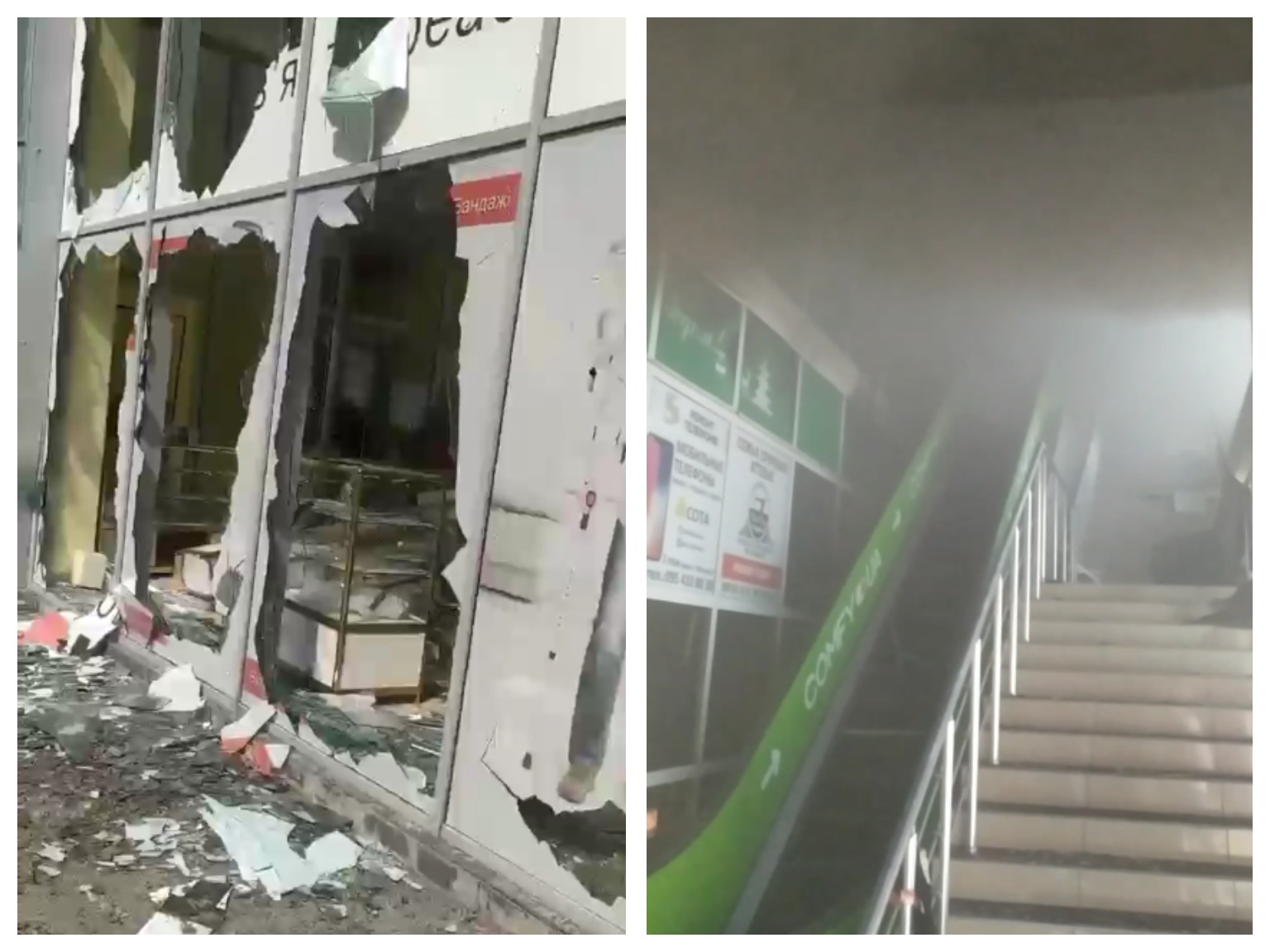 В другом видео показан ТЦ "Кристалл", где расположены магазины "Сильпо" и "Comfy". После обстрела в здании был пожар - на видео видно задымление.