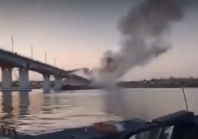 В сети появилось видео, как выглядят прилеты украинских ракет по Антоновскому мосту вблизи, передает Час Пик.