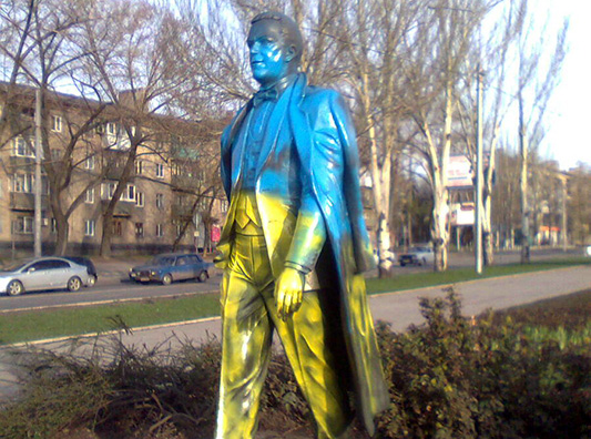 В Донецке памятник Иосифу Кобзону покрасили в цвета государственного флага Украины, сообщает ОстроВ.