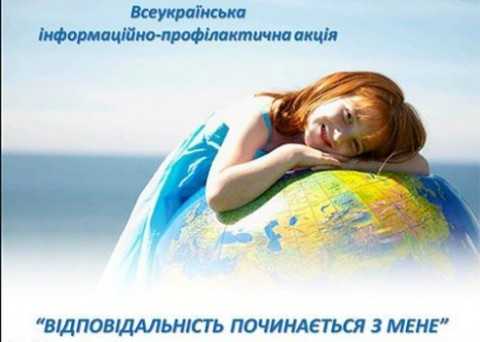 На территории Львовщины продолжается Всеукраинская информационно-профилактическая акция «Ответственность начинается с меня», цель которой - решить ряд актуальных вопросов в сфере здорового образа жизни. Основными задачами акции являются выявление фактов нарушения действующего законодательства в сфере продажи алкогольных напитков несовершеннолетним, соблюдение норм Закона Украины “О рекламе”, проведение информационно-профилактической работы, сотрудничества с общественными организациями, средствами массовой информации и т.д.