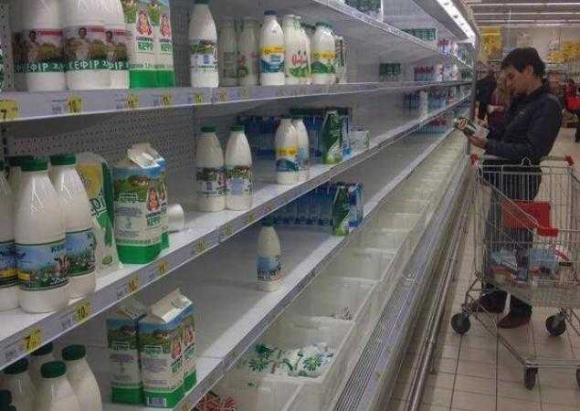 Полюшкин констатировал, что Крым пока не в состоянии самостоятельно себя обеспечить целым рядом продуктов питания. Так, крымские предприятия обеспечивают регион мясом и мясопродуктами на 70,3%, молоком и молочными продуктами - 34,7%, растительным маслом - 3,2%, яйцами - 76,4%, а сахаром регион не может обеспечить себя даже на 1%. Недостающая часть продукции завозилась в Крым из регионов Украины.