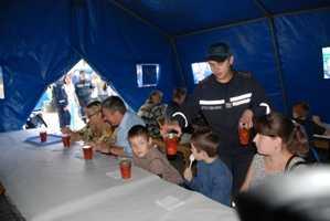 Спасатели развернули палатки, где люди смогли отдохнуть и отведать местные блюда.