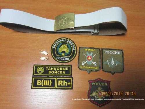 В ходе проведения личного досмотра у задержанного среди прочего обнаружены нашивки и шевроны Вооруженных сил России.