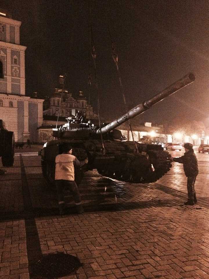 "Михайловская площадь не спит этой ночью. Такого она еще не видела. С фронта свозят российскую технику. Танки, "Грады", БМП, БТР. Приходите сегодня, 21 февраля, с часу дня на Михайловскую площадь. Смотрите, запоминайте, знайте", - написал Лубкивский у себя в Facebook.
