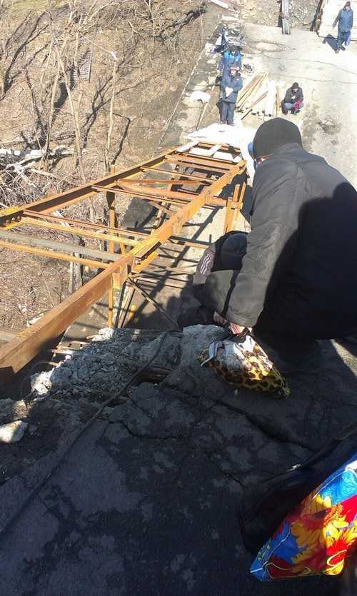 По сообщению ЛуганскИнформЦентра вчера была завершена установка основных металлических конструкций, осталось установить только перила. В строительстве переправы принимали участие работники луганского завода «Маршал», а древесину привезли бойцы батальона «Айдар».