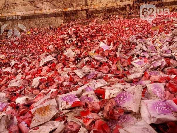 «Сладкая жизнь» Донецка: боевики «ДНР» выбросили десятки тысяч конфет прямо на улицу, разграбив склад кондитерской фабрики "АВК" в Ленинском районе.