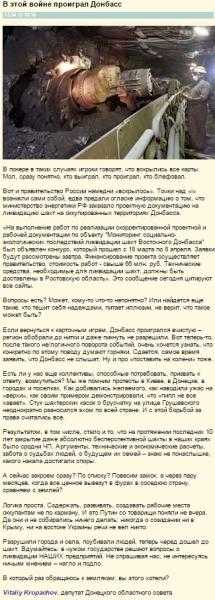 В покере в таких случаях игроки говорят, что вскрылись все карты. Мол, сразу понятно, кто выиграл, кто проиграл, кто блефовал. Вот и правительство России намедни «вскрылось». Точки над «i» возникли сами собой, едва предали огласке информацию о том, что министерство энергетики РФ заказало проектную документацию на ликвидацию шахт на оккупированных территориях Донбасса. Об этом на своей странице в Фейсбуке написал Vitaliy Kropachov, депутат Донецкого областного совета.