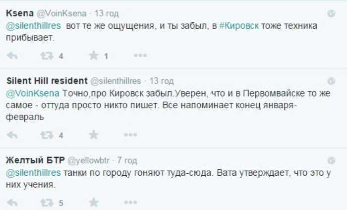 В пятницу, около 17:30, жители Стаханова наблюдали движение колонны вражеских танков. По словам местных, военная техника прошла по проспекту Ленина до улицы Чайковского. В составе колонны прошли не менее 11 танков с живой силой на броне. Все бронемашины имели бортовые номера. Очевидцы предполагают, что техника зашла в город со стороны Алчевска через Брянку.
