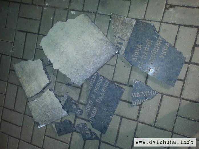 Активисты организации Черный Комитет согласно закону о борьбе против тоталитарных символов, сегодня, 9 мая, вступает в силу - уничтожили памятную табличку основателю первой ДНР в Украине (Донецко-Криворожской Советской Республики) Федора Сергеева - Артема, которая находилась по ул.Артема в Киеве.