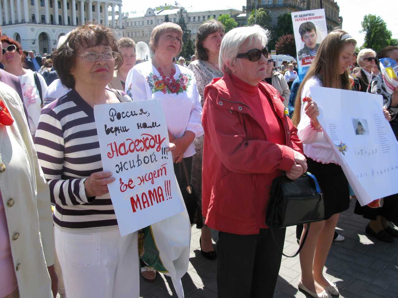 Люди принесли фотографии Н.Савченко и скандировали "Надя, мы с тобой".