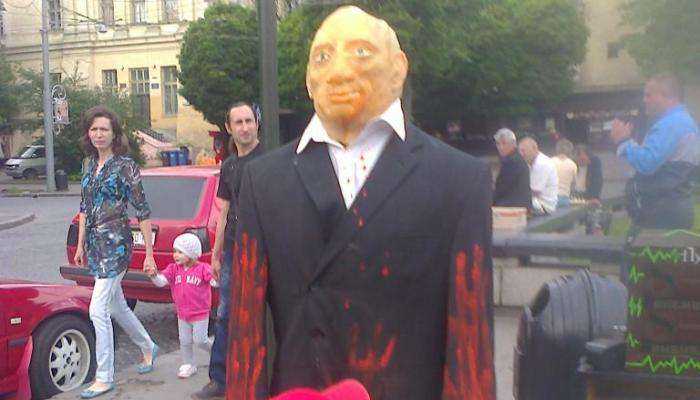 Напомним, в центре Львова поставили резиновое чучело президента России Владимира Путина, которое может вздрючить каждый желающий.
