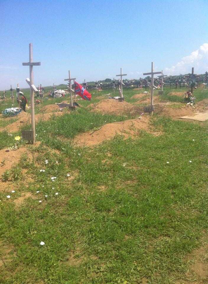"Много захоронений с табличками "солдат номер 9" и т.д. Сильно близко не подходила. Сказали, вчера хоронили, кладбище оцепляют. Вырыто еще могил два ряда. В общем, просмотрите. Донецк, 5 июня 2015г. Кладбище на Шесть-Капитальной".