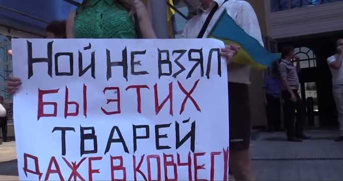 «Мы приехали, чтобы встретить и помешать очередному дерибану, из-за чего они сюда приехали. С курортом, или еще с чем-то. Очередному продвижению новороссии в Славянске и на освобожденных территориях», — сказал присутствовавший там человек. «Мы давно знаем Наташу Королевскую, не понимаю, почему она до сих пор не в тюрьме. Значит, кому-то это нужно», — сказал местный житель Василий Хоменко.
