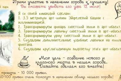 На заброшенной части Приднепровского парка, будет установлен современный арт-объект, целью которого будет обновление культурного облика города.