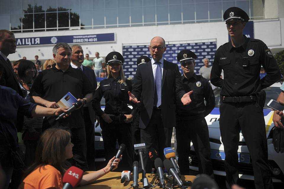 В Хмельницком, вместе с министром внутренних дел Арсением Аваковым и премьер-министром Украины Арсением Яценюком, патрульную полицию представлял полицейский Дмитрий, рост которого 2.20. Об этом Аваков написал в Facebook.