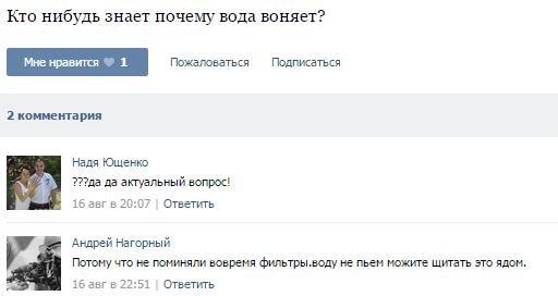 В группах ВКонтакте люди также с тревогой гадают, что же случилось с водой и безопасно ли ее пить: