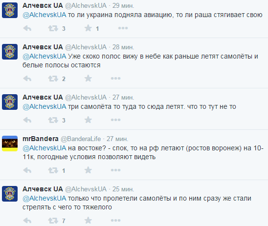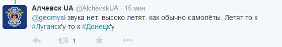 "С самого утра над Алчевском летают самолеты. Воздушное пространство открыто?" - такое сообщение появилось сегодня в Твиттере.