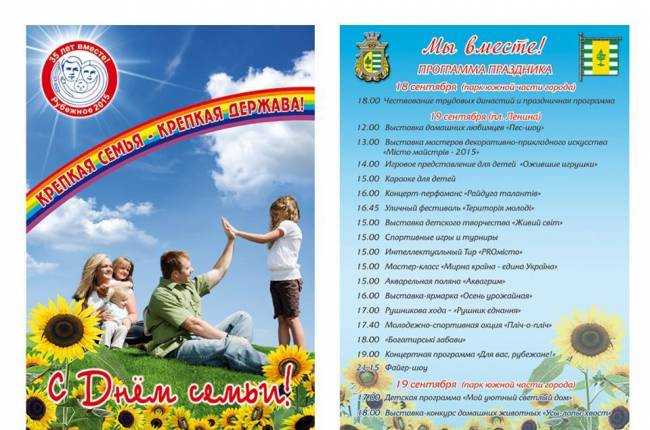 В городе Рубежное Луганской области 19 сентября пройдет празднество Дня семьи. На площади Ленина мероприятия начнутся в 12:00 с выставки домашних любимцев.