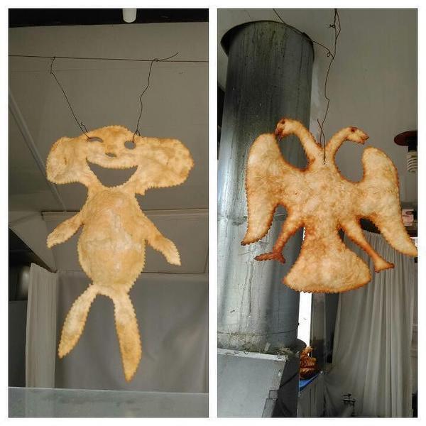 В городе Алушта в аннексированном Россией Крыму приготовили чебуреки в виде двуглавого орла, изображаемого на гербе РФ, а также Чебурашки. Фотография оригинальных чебуреков опубликована в Twitter RoksolanaToday&Крым.