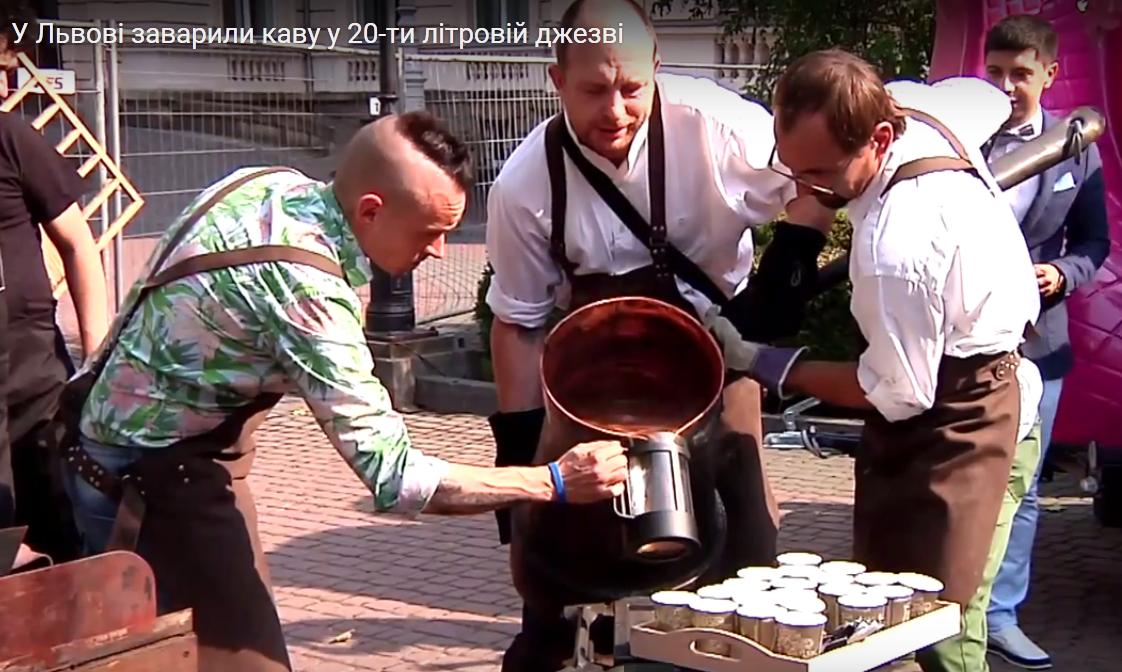 Во дворе Дворца искусств во Львове начался 9-й Lviv Coffee Festival. На этот раз душистый напиток заварили в 20-ти литровой турке на улице.