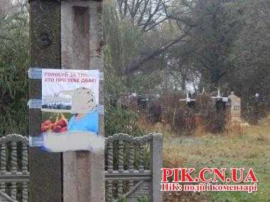 На территории козелецкого района Черниговской области в «день тишины» агитационные листовки одного из кандидатов от известной партии были были размещении возле кладбища.