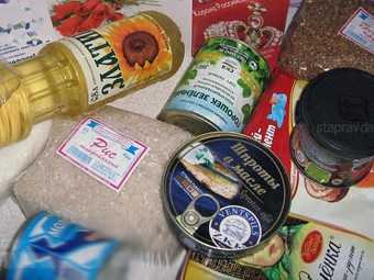 В паек входят макаронные изделия, крупа, сахар, растительное масло, мясные и рыбные консервы.