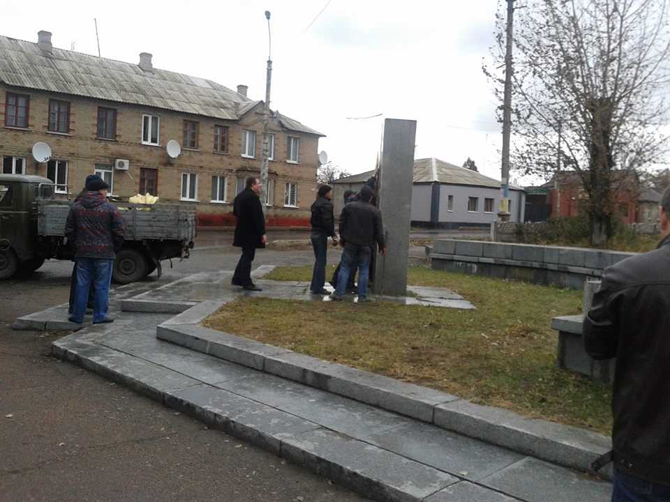 "Пал очередной идол! Демонтирован памятник К.Ворошилову в г.Лисичанске на углу ул.Красная и Октябрьская".