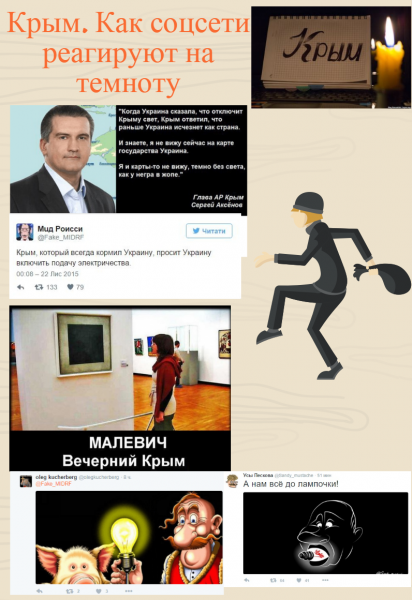 Поставки электричества из Украины были полностью прекращены, почти весь полуостров оказался обесточен. Пользователи в соцсетях на это событие отреагировали фотожабами.