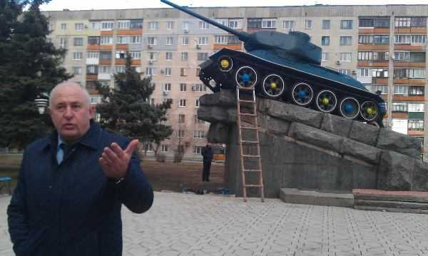 Перекрасить танк в зеленый цвет дал распоряжение городской голова от «Оппозиционного блока» Сергей Шилин. Ему пришло обращение от ветеранов, с просьбой вернуть первоначальный цвет.