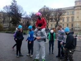 Сегодня в городе Львов на площади перед памятником Франко мужчины с собственными женами участвовали в отборочном этапе накануне чемпионата Украины "Забег с женами".