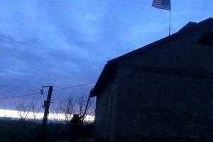Украинские военные в районе Новгородского, прямо на линии разграничения, повесили флаг Украины и США.
