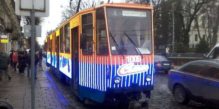 Также в Сеть выложили фото «новогоднего» трамвая, который курсирует транспортными маршрутами города Львова.